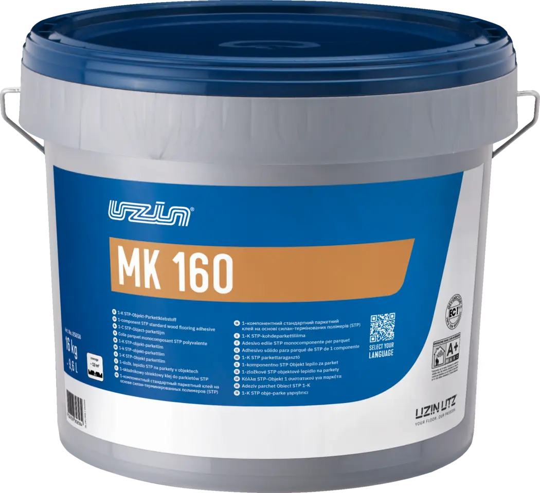 UZIN MK 160 este un adeziv profesional pentru parchet, pe bază de tehnologie STP, monocomponent, conceput pentru lipirea rapidă și eficientă a parchetului stratificat la interior. Datorită consistenței ușor de aplicat și formării bune a striațiilor, produsul oferă o instalare controlată, curată și sigură, inclusiv pe șape cimentoase, șape pe bază de sulfat de calciu, beton, plăci OSB/P4–P7 și sisteme de încălzire în pardoseală cu apă.